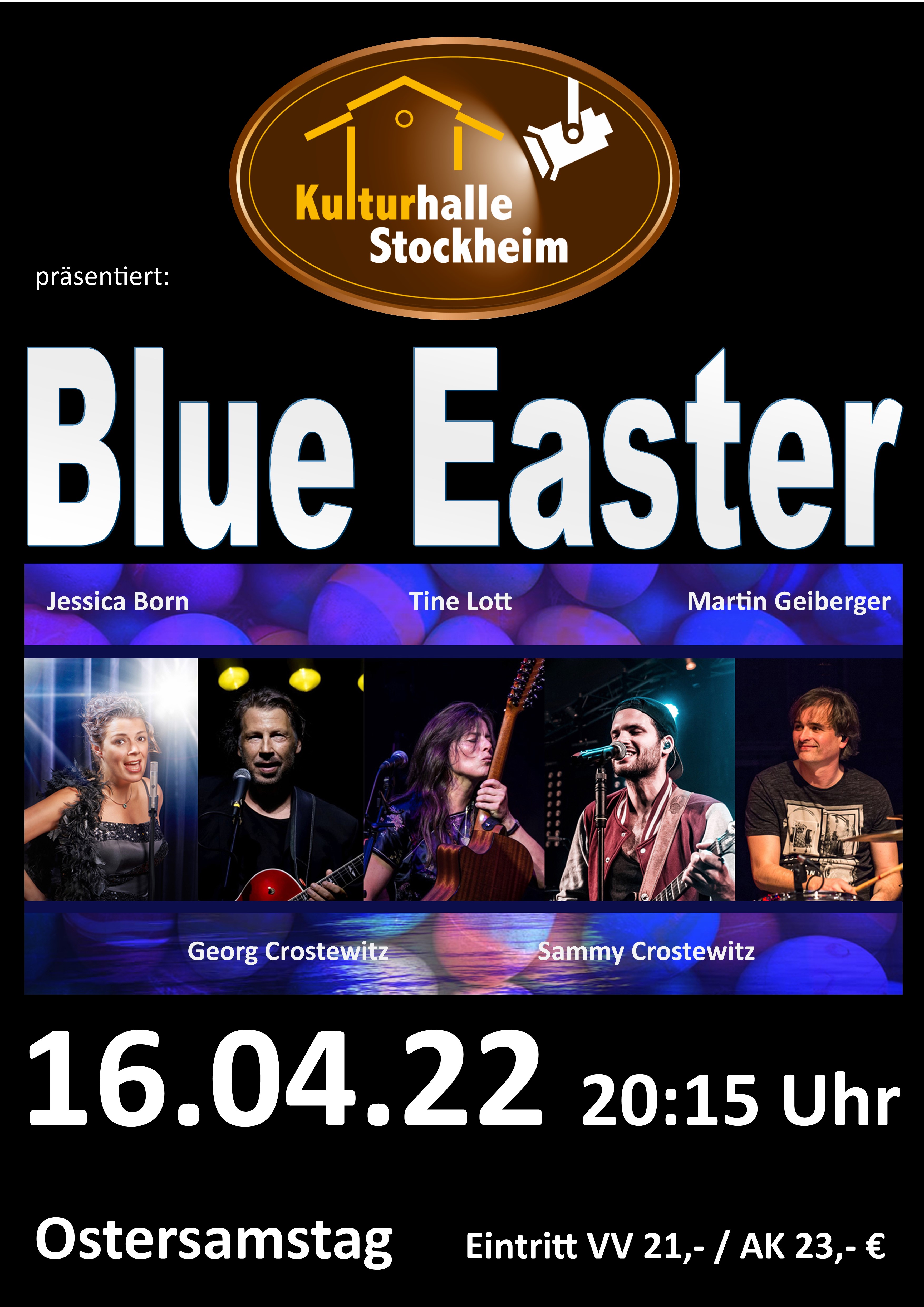 Tine Lott und Georg Crostewitz präsentieren ein Best-off Osterprogramm, Jessica Born singt Blues und Balladen aus der neuen CD mit Georg Crostewitz. Als Verstärkung sind noch Martin Geiberger an den Drums und der Sohn von Georg, Sammy, als Bassist mit von der Partie. Sammy wird auch eigene Stücke aus seinem neuen Album spielen.